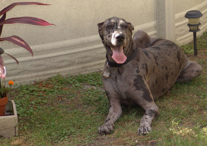 Stores that sell clothing for construction and roadway workers also often sell cooling bandanas or fabric neckbands filled with water-absorbing crystals. Next time you buy one for yourself, either for work or just to get you through the summer days, buy one for your dog.